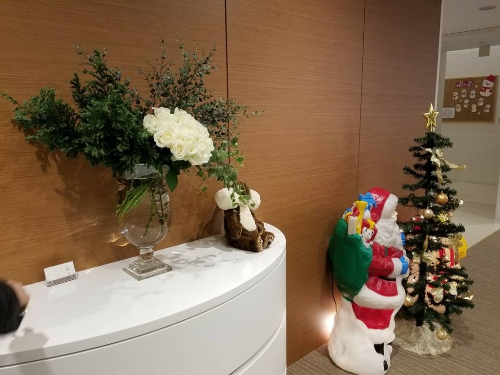 エントランス正面に飾られた、美しい生花のフラワーアレンジが私たちを迎えてくれました。