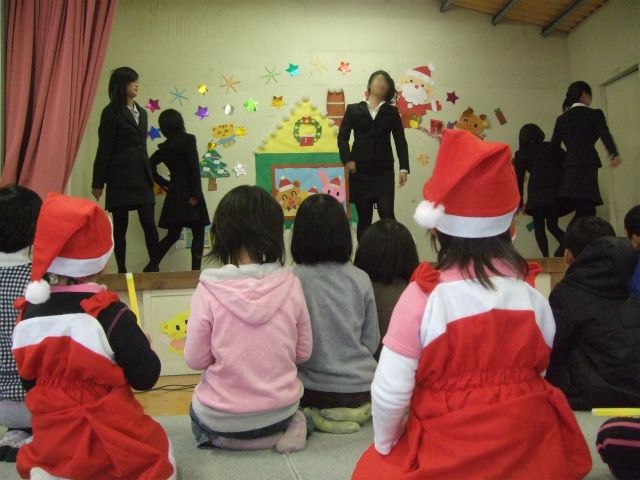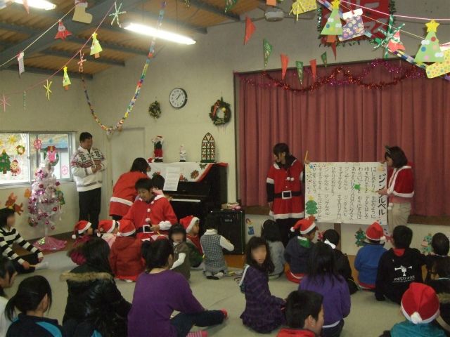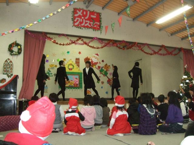 クリスマスの出し物では、小学生から高校生まで、皆が協力し合って楽しい時間を作り出していました。中高校生のお兄ちゃんお姉ちゃんのお膝には低学年の子供達がにっこり座ります。子供達は色々な境遇があり、少なからずの傷を持っている事と思いますが、学園を、大人を信頼し、前向きに生きる心を持ち、落ち着いている上級生が、下級生の面倒を見てあげる古処学園。今回ご訪問させていただき、全国の美鈴サンタの皆さんのお気持ちが、施設でしっかりと子供達の成長のお手伝いとして活かされているのを実感させていただきました。