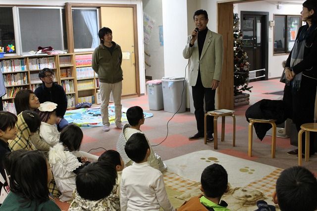 ¡ÖÈþÎ륵¥ó¥¿¢ö¤¬Íè¤Æ¤¯¤ì¤ë¤è¡Á¡ª¡×¤È¡¢0ºÐ¡Á3ºÐ¤Î»Ò¤É¤â¤¿¤Á¤¬ÍâÆü¤Î¥¯¥ê¥¹¥Þ¥¹¥Ñ¡¼¥Æ¥£¤Ë¸þ¤±¡¢Îý½¬¤·¤Æ¤¤¿¥À¥ó¥¹¤òÈäϪ¤¹¤ë¤¿¤á¤Ë¡¢¥¹¥¿¥ó¥Ð¥¤¤·¤Æ¤¯¤ì¤Æ¤¤¤Þ¤·¤¿¡£Áᮡ¢¥¸¥ç¡¼¥¸¥µ¥ó¥¿¤ËÊѿȤ·Éô²°¤Ø¸þ¤«¤¤¤Þ¤·¤¿¡£ÂÀÍۤθ÷¤¬Âô»³Æþ¤ê¤È¤Æ¤âÌÀ¤ë¤¯À¶·é´¶¤Î¤¢¤ë¤ªÉô²°¤Ç¡¢Ãæ¿´¤Ë¤Ï¥¯¥ê¥¹¥Þ¥¹¥Ä¥ê¡¼¤¬¾þ¤é¤ì¤¿Éô²°¤Ë²»³Ú¤È¶¦¤Ë¼êºî¤ê¤Î°áÁõ¤ò¿È¤Ë¤Þ¤È¤Ã¤¿»Ò¶¡¤¿¤Á¤¬²Ä°¦¤¯¹Ô¿Ê¤·¤Ê¤¬¤éÆþ¾ì¡£¥¥é¥¥é¤·¤¿¾Ð´é¤Î»Ò¤É¤â㤬¥µ¥ó¥¿¥¯¥í¡¼¥¹¤òÌܤÎÁ°¤Ë¡¢¾¯¤·¶ÛÄ¥¤·¤¿ÍͻҤǤ¯¤ë¤¯¤ë²ó¤ê¤Ê¤¬¤é°ìÀ¸·üÌ¿¥À¥ó¥¹¤òÍ٤äƤ¯¤ì¤Þ¤·¤¿¡£